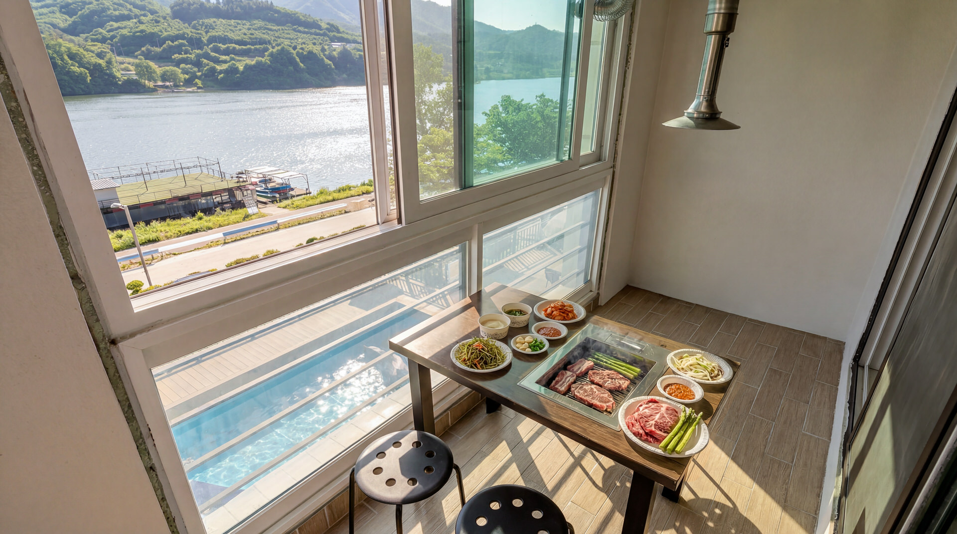 창문 너머로 흐르는 잔잔한 리버뷰를 바라보며, 부드러운 햇살과 함께 스며드는 풍경이 하루의 행복을 채워줍니다.